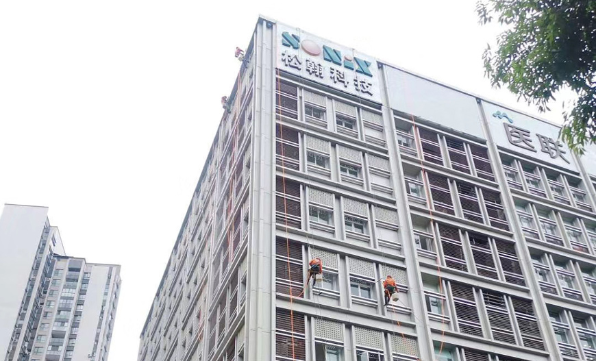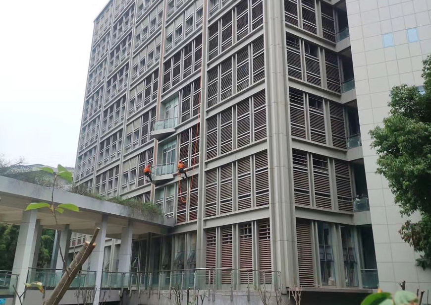 成都潔爾亮清潔對B區(qū)大樓外墻清洗服務。